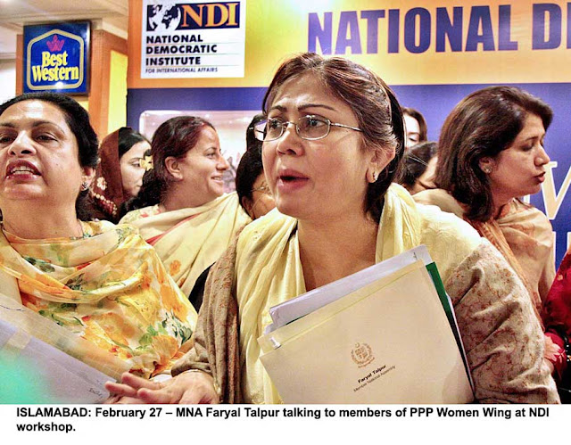 According to a wikileaks diplomatic cables leak in November 2010, fearing attempts on his life, Pakistani President Asif Ali Zardari told ambassador Anne W. Patterson that in the event he were to be assassinated, he had instructed his son Bilawal Bhutto Zardari(who, along with Zardari, is the co-Chairman of the ruling Pakistan Peoples Party) to appoint his sister Faryal Talpur as President